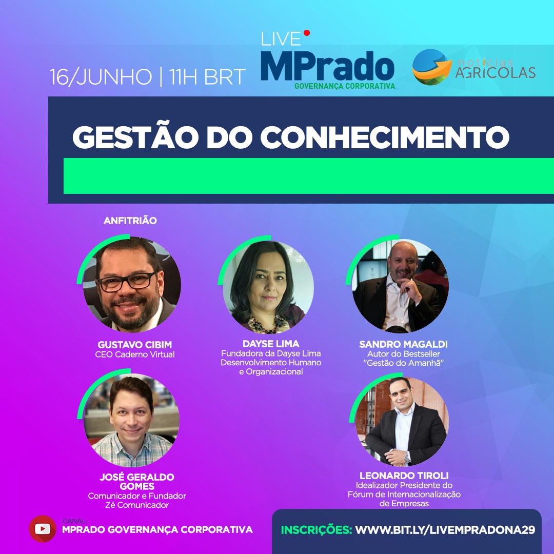 No debate desta terça-feira (16/06), às 11 horas será discutido sobre "Gestão do conhecimento", com Gustavo Cibim, CEO Caderno Virtual, Dayse Lima, fundadora da Dayse Lima Desenvolvimento Humano e Organizacional, Sandro Magaldi, autor do bestseller "Gestão do amanhã", José Geraldo Gomes, comunicador e fundador Zé Comunicador e Leonardo Tiroli, idealizador e presidente do Fórum de Internacionalização de Empresas.