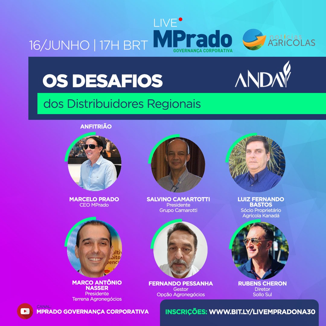 No debate desta terça-feira (16/06), às 17 horas será discutido sobre "Os desafios dos distribuidores regionais", com Marcelo Prado, CEO da MPrado, Salvino Camaroti, presidente do Grupo Camaroti, Luiz Fernando Bastos, sócio proprietário da Agrícola Kanadá, Marco Antônio Nasser, presidente da Terrena Agronegócios, Fernando Pessanha, gestor da Opção Agronegócios e Rubens Cheron, diretor da Sollo Sul.