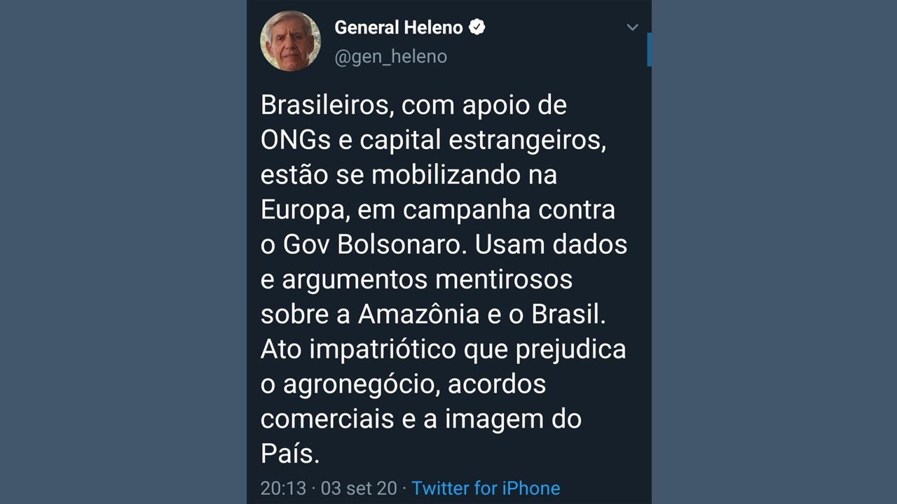 "Campanha dos ambientalistas é injusta e desonesta", diz Gen Heleno