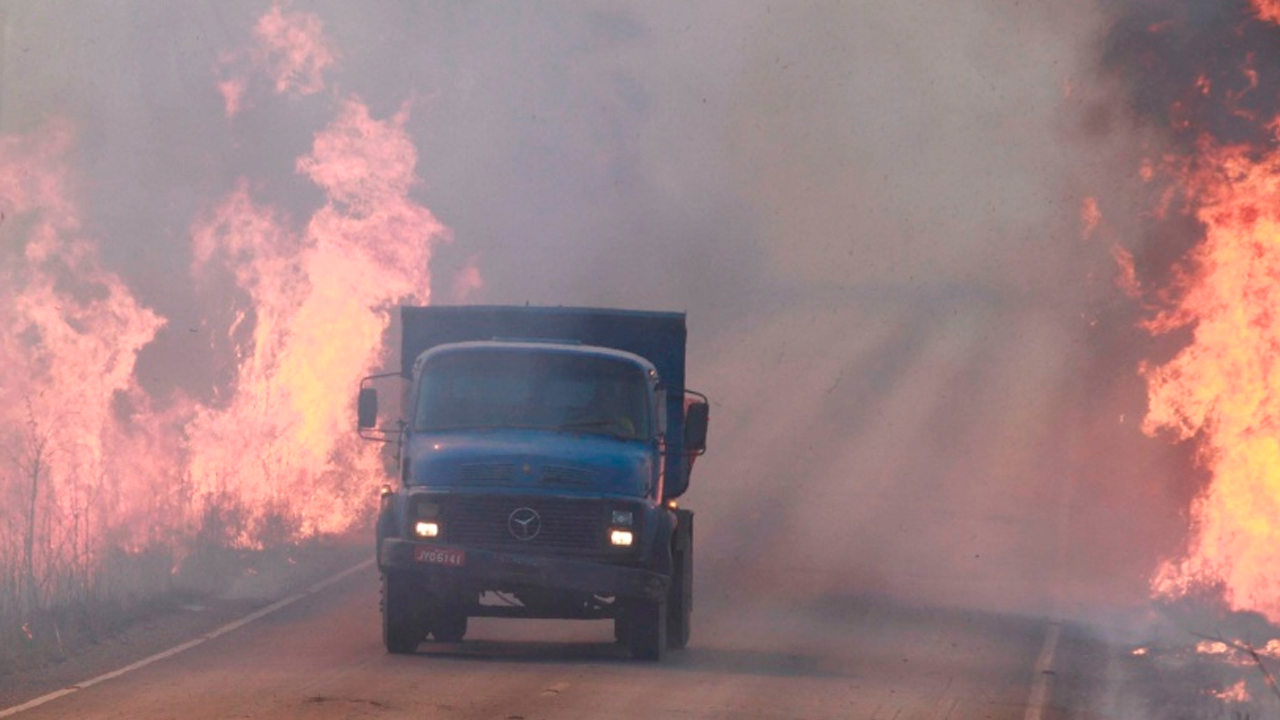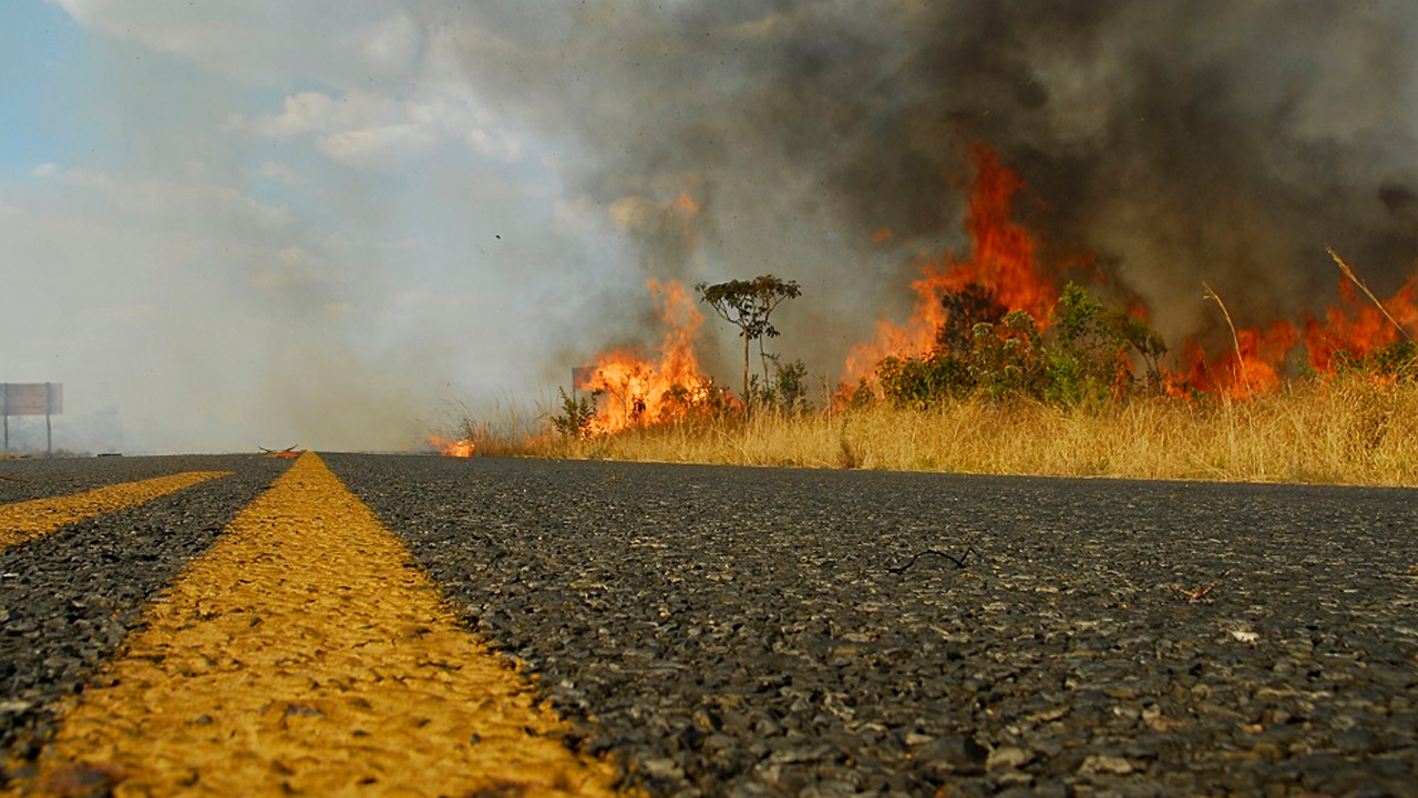 Confira imagens das estradas com focos de incêndio