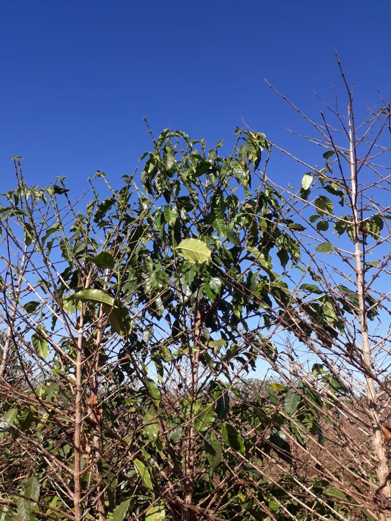 Assim, até o início da safra, os cafezais que vinham resistindo razoavelmente bem apresentaram uma desfolha muito grande com o encaminhar da colheita. Agora, no final da safra, o enfraquecimento tornou-se evidente, comprometendo em muito o potencial produtivo para 2020.