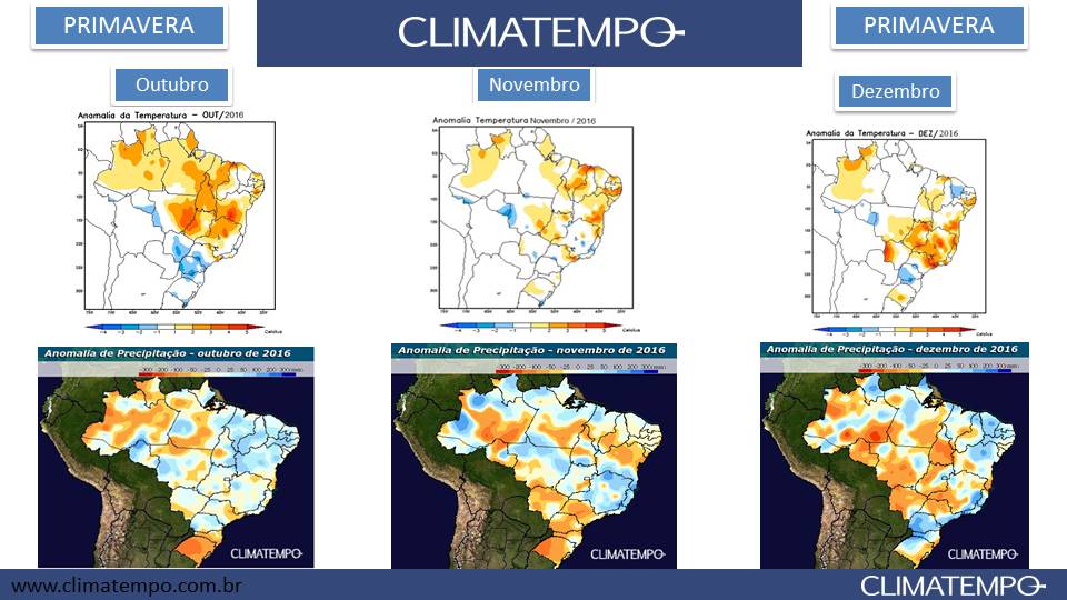 Assim, "as previsões indicam que o próximo trimestre será de temperaturas ligeiramente mais altas e chuvas irregulares em todo o país", acrescenta. (Confira o mapa climático).