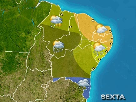 No sul e no oeste da BA ocorrem várias pancadas de chuva no decorrer do dia e há risco de chuva forte. Sol entre nuvens e chuva a qualquer hora no sul do MA e do PI. Sol, calor e chuva rápida entre o centro do MA e SE. Tempo firme nas demais áreas.