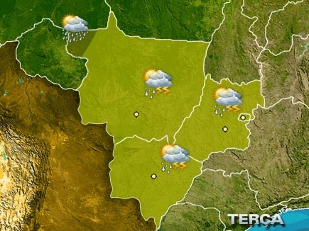 O sol brilha com força e a sensação é de tempo abafado no Centro-Oeste. No decorrer do dia nuvens carregadas se formam por causa do calor e provocam rápidas pancadas de chuva entre a tarde e a noite. Chove a qualquer hora no oeste de MT.