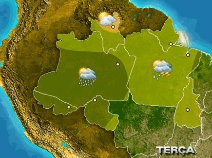 O sol brilha forte e o tempo fica firme no norte de RR. Áreas de instabilidade associadas ao ar quente e úmido ajudam a formar nuvens carregadas nas demais áreas da Região. Chove a qualquer hora no AC, em RO e no AM. Chuva à tarde no PA, no TO e AP.