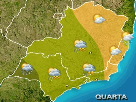 O sol predomina e não chove no norte de MG e no sul e oeste do ES. Sol e chuva rápida no norte do ES. Sol e pancadas de chuva nas demais áreas. Há risco de chuva forte em SP.
