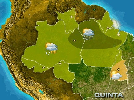 Muitas nuvens e chuva a qualquer hora do dia no leste e norte do AM, no oeste do PA, no sul de RR e no norte do AP. Já no centro-sul do TO, o tempo fica seco. Nas demais áreas faz sol e ocorrem pancadas de chuva isoladas a partir da tarde.
