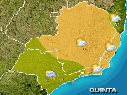Uma massa de ar seco predomina e garante um dia de sol e sem chuva no ES, no RJ e em grande parte de MG. O sol também brilha com força, mas a presença de umidade ajuda a formar nuvens que provocam chuva à tarde no sul de MG e em SP.