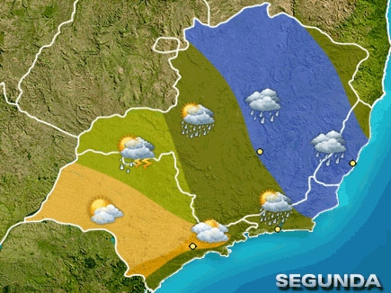 Instabilidades associadas a um sistema de baixa pressão provocam chuva a qualquer hora no ES, no RJ e no leste e norte de MG. Pode chover forte. Muitas nuvens e chuva fraca no litoral de SP. Sol e pancadas de chuva à tarde nas demais áreas.