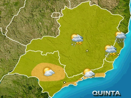 Quinta-feira de muitas nuvens e chuva a qualquer hora no litoral e norte do ES. No centro e sul de SP o sol predomina e não chove. Nas demais áreas da região faz sol, mas entre a tarde e a noite ocorrem pancadas de chuva que podem vir com raios.
