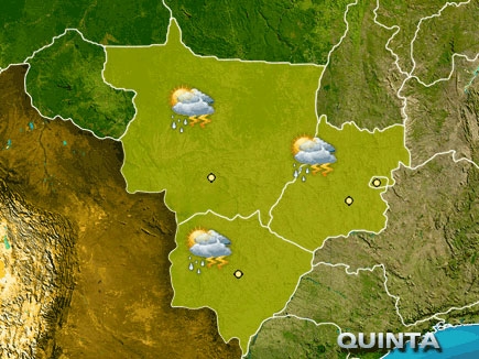 O sol aparece com força em toda a região nesta quinta-feira. No oeste de MS ocorrem rápidas pancadas de chuva no decorrer do dia. As nuvens aumentam a partir da tarde e ocorrem pancadas de chuva com raios de forma isolada nas demais áreas.