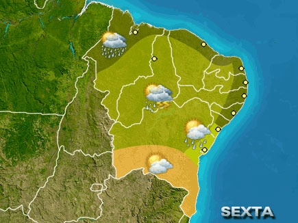 Muitas nuvens e chuva a qualquer hora entre o norte do MA e o litoral de SE. Há risco de chuva forte no RN. Já no centro-sul da Bahia o sol brilha forte e não chove. Nas demais áreas a previsão é de chuva passageira entre a tarde e a noite.