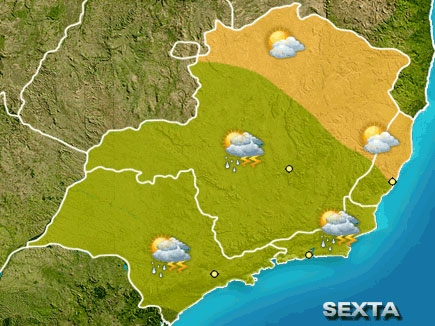 Nesta sexta-feira o tempo segue firme no norte de MG e no centro-norte do ES. Já no sul de MG, no interior do RJ e no nordeste de SP o sol aparece entre nuvens e chove a qualquer hora. As demais áreas só devem ter chuva a partir da tarde.