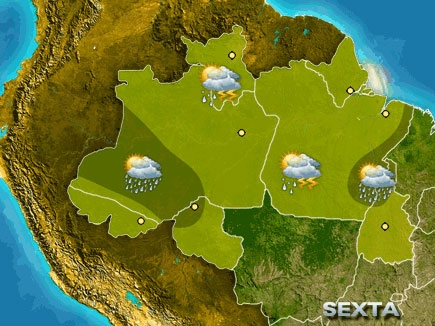 Nesta sexta-feira muitas nuvens se formam e chove várias vezes no centro do TO, sul do PA e do AM, no AC e no norte de RO. Nas demais áreas o sol predomina, mas pode chover com raios de forma isolada principalmente à tarde e à noite.