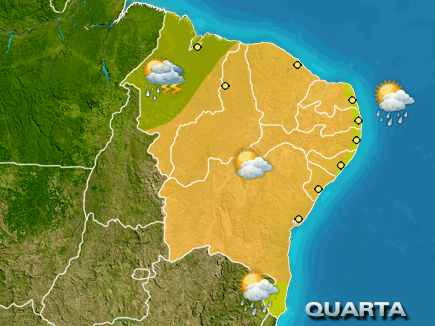Sol, aumento de nuvens e chuva a partir da tarde no sul da BA. A costa entre AL e o leste do RN tem sol forte e pancada rápidas de chuva. Chuva e trovoada a partir da tarde no MA. Tempo seco e quente nas demais áreas do Nordeste.