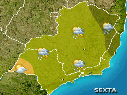Sexta-feira de muitas nuvens e chuva a qualquer hora no RJ, sul do ES e entre o norte e sudeste de MG. Nas demais regiões do Sudeste o predomínio é de sol, esquenta à tarde e chove de forma isolada. Sem chuva no oeste de SP.