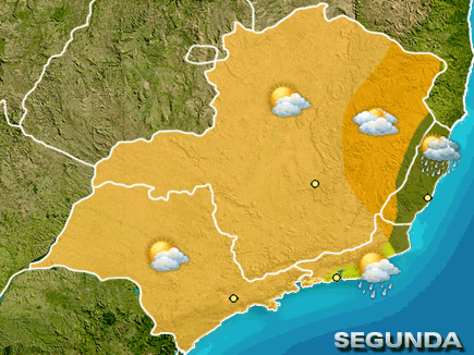 O dia tem predomínio de sol em todas as áreas da Região. Apenas no ES, é que os ventos que sopram contra a costa aumentam as nuvens e pode chover forte. Demais áreas com tempo firme.