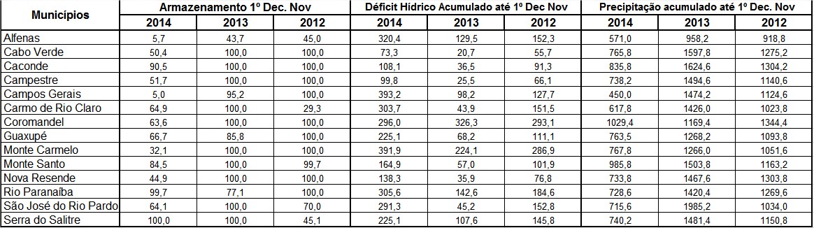 Veja tabela da Cooxupé com as condições climáticas em vários municípios monitorados: