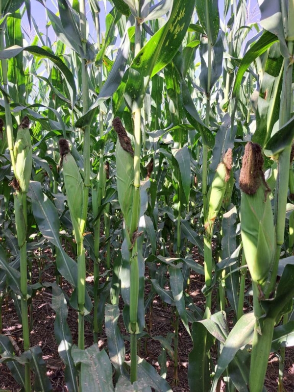 O desempenho, em geral, foi muito positivo, mas parte do milho semeado em março sofreu com a falta de chuva por 30 dias entre abril e maio, o que fez com que as espigas não formassem os grãos até o final (Confira as imagens abaixo)