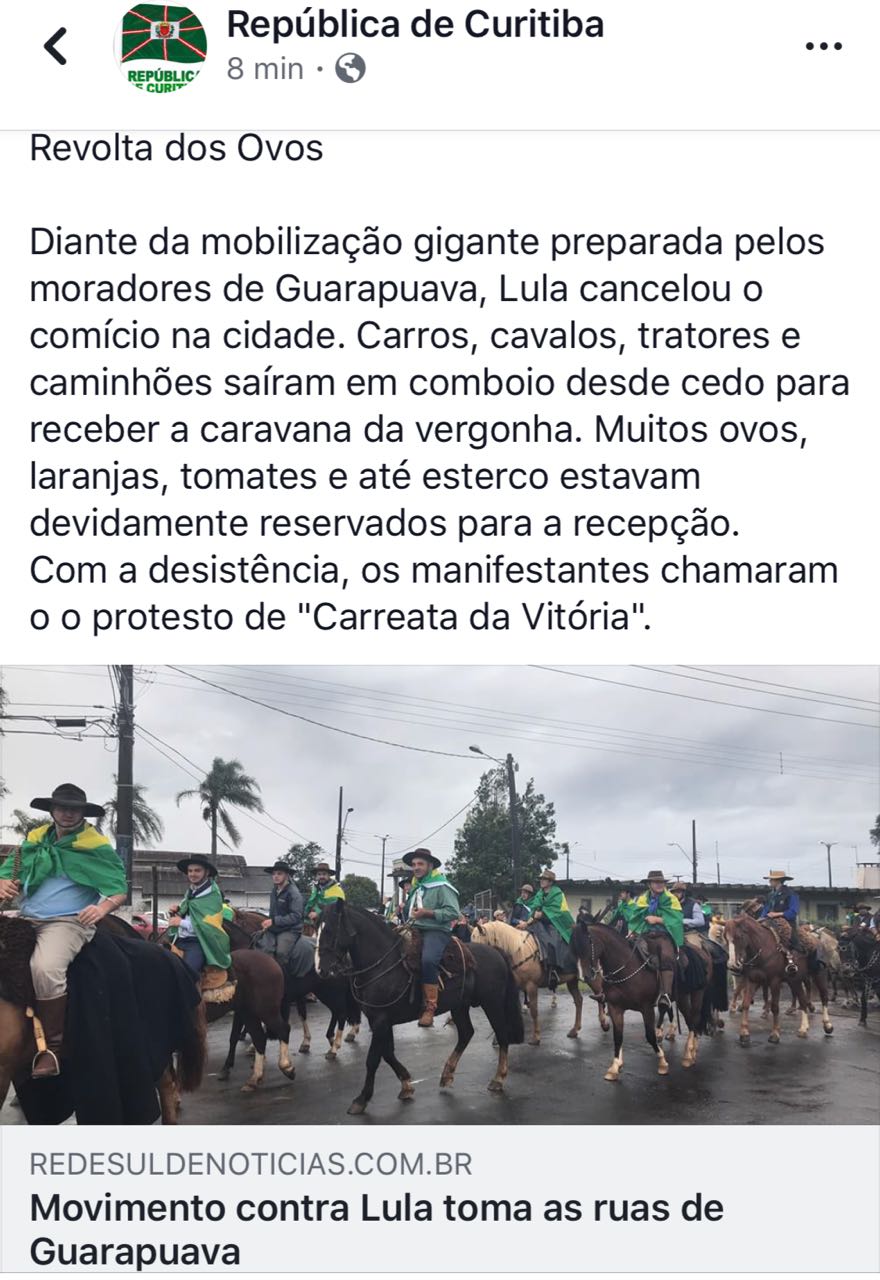 “Nós não estamos protestando apenas contra a presença dele em nosso Estado, mas também por conta de uma pessoa já condenada estar fazendo campanha eleitoral com dinheiro de recursos públicos”, explicou Rodolpho Botelho, presidente do sindicato de Guarapuava.