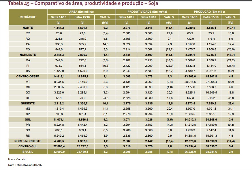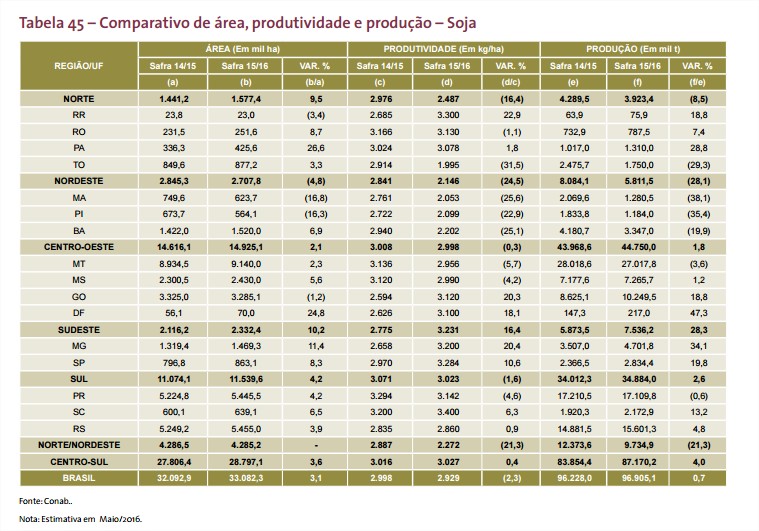 Nesta terça-feira (10), ao reportar o 8º levantamento de Avaliação e Acompanhamento da Safra de Grãos e Oleaginosa, a Conab (Companhia Nacional de Abastecimento) errou ao não atualizar as informações para a safra de soja 2015/16 do Piauí, relatou o representante da Aprosoja Piaui, Altair Fianco, em entrevista ao Notícias Agrícolas. A produção foi estimada em 1.184 milhão de toneladas do grão, mesmo número indicado no boletim de abril. Porém, a projeção correta é de 859 mil toneladas da oleaginosa, uma diferença de 325 mil toneladas.