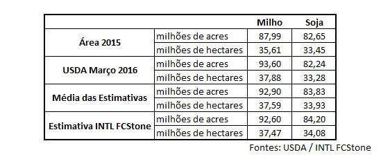 Errata da INTL FCStone: Durante a entrevista, o analista fez uma conversão errada de acres para hectares. Os outros números concedidos estão corretos. Abaixo segue as tabela com os dados corrigidos: