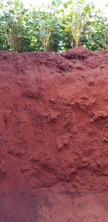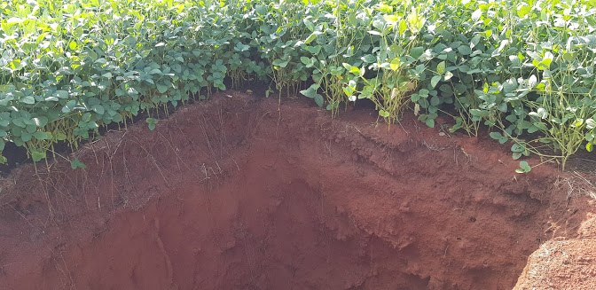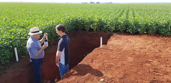 O Notícias Agrícolas visitou a propriedade de Lucas Rigodanzo, em Chapadão do Céu (GO), na qual há uma trincheira mostrando a fertilidade da terra e os cuidados que os produtores têm tomado pensando na profundidade do solo. A trincheira mostra raízes com mais de 2 metros de profundidade, de forma que a área de soja tem uma perspectiva de produção de 90 sacas por hectare.